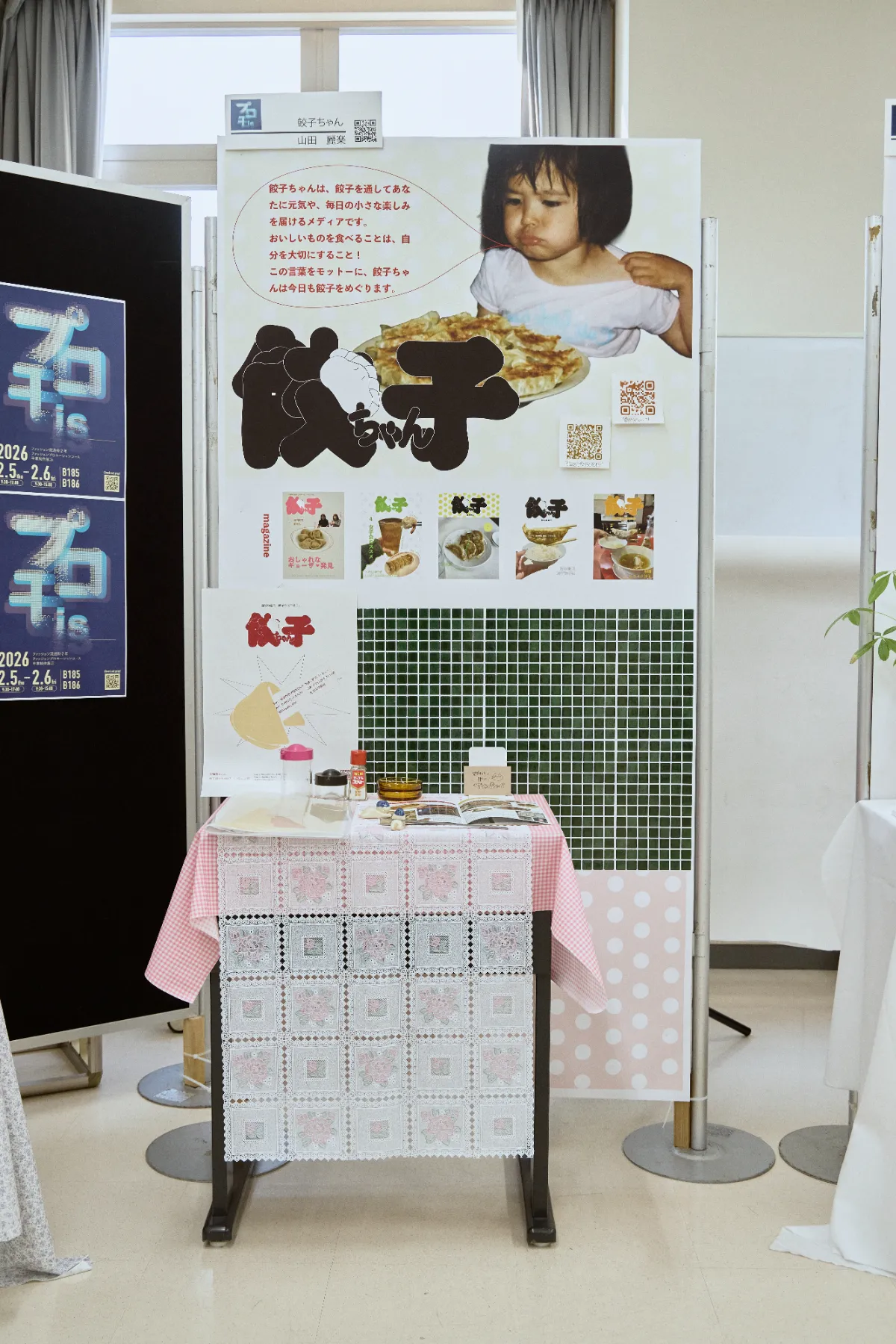 ひと目で「食」のメディアと伝わるよう、板にタイルシールを貼り、机には食器や調味料を並べて世界観を演出しました。当日は多くの人が立ち止まりリアクションをしてくれました。ZINEも想像以上に早くに無くなり、とてもうれしく、やりがいを感じた瞬間でした。